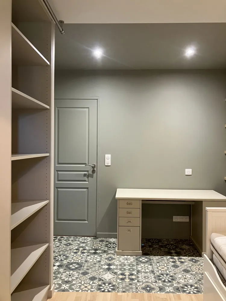 >> Paprika architectures a été sollicité pour repenser l’aménagement du premier étage d’une maison dans la perspective de l’agrandissement de la famille. L’intervention prévoit la transformation du bureau existant en chambre pour bébé/enfant, le réaménagement de la chambre parentale avec intégration de rangements supplémentaires, ainsi que l’évolution de la chambre d’ami en un espace mixte chambre/bureau.